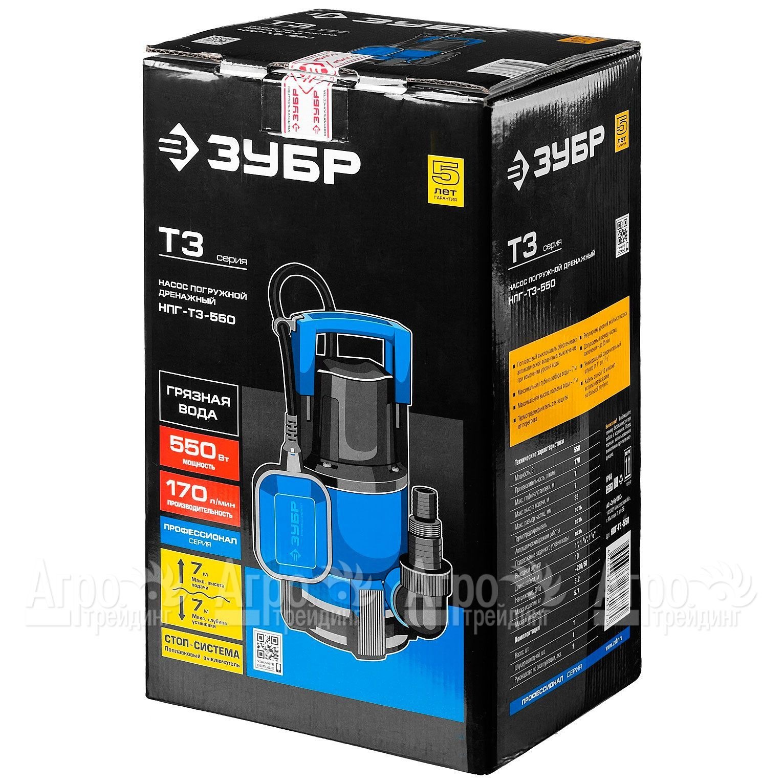 Дренажный насос Зубр НПГ-Т3-550