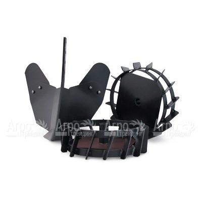 Базовая комплектация: 4 фрезы, рукоятка в сборе с акселератором и ручкой сцепления в комплекте с тросами, сошник с опорными колесами, труба руля, 2 защитных основных крыла, моторное масло 1 л